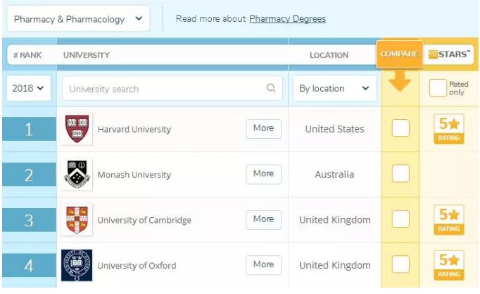 目前澳洲八大均开设了药学专业,不过在这里小编想要隆重推荐一下蒙纳士大学的药学专业。为什么呢?因为在2019最新QS全球大学排名中,蒙纳士大学的药剂与药理学排名第2位,仅次于哈佛大学,领先于牛津剑桥哦!